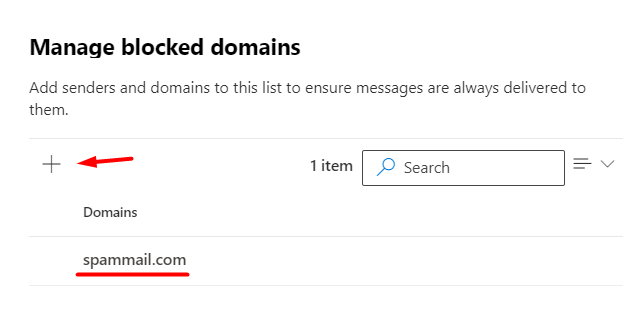 + butonu ile engellemek istediğim domaini seçip kaydediyorum. İşlem bu kadar. Benim örneğimde artık spammail.com’dan gelen mailleri organizasyon bazında engellemiş bulunuyorum.