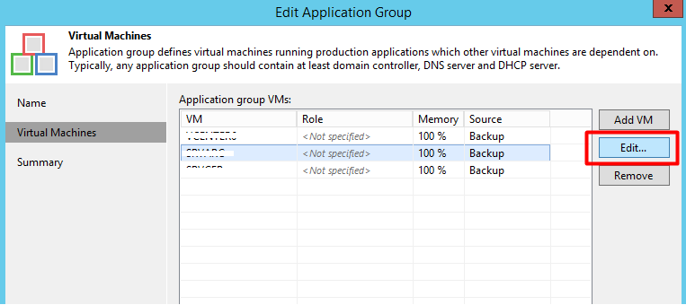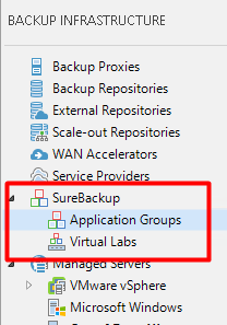 Backup Infrastructure menüsü altında SureBackup başlığını bulun. Application Groups‘ta söz konusu sanal sunucunun yer aldığı Application Group’a çift tıklayın.