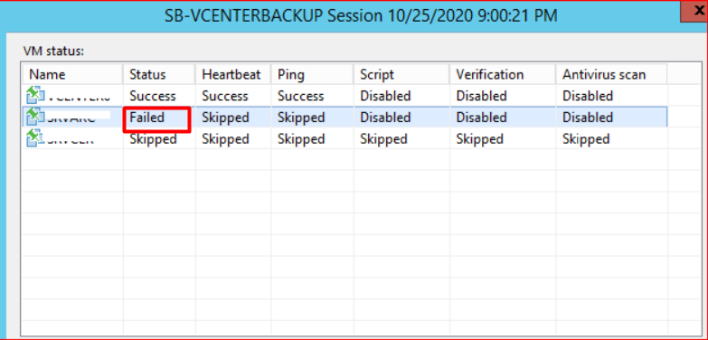 Sure Backup Job çok uzun sürüyor ve daha yedeklerin sağlamasını yapamadan “Powering on” aşamasında failed duruma gelip sona eriyor. Aslında Job çalışırken vCenter üzerinden sanal makinanın power on olduğunu farkedersiniz fakat Job’ı kontrol ettiğinizde Powering on aşamasını geçemediğini görürsünüz.
