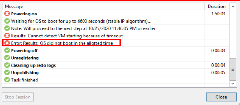 Job detaylarını incelediğinizde de “OS did not boot in the allocated time” hatası alıyorsanız bunun bir kaç nedeni olabilir.