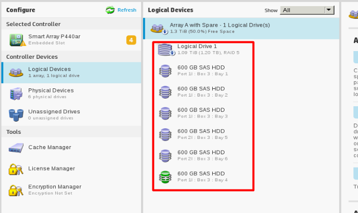 Array A’yı tekrar kontrol ettiğimizde artık yeni disklerimizin de eklendiği görülüyor. Sonrasında yine Logical Drive üzerine tıkladığınızda ekranın sağında bulunan Extend Logical Drive’a tıklayın. Maximum veya kullanmak istediğiniz kapasiteyi seçip onaylayın.