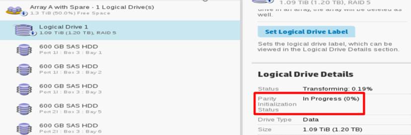 Logical Drive seçiliyken ekranın sağında Parity Initialization işleminin başladığını görürsünüz. Bu işlem ortamınıza göre değişmekle beraber yaklaşık 24 saat sürebilir.