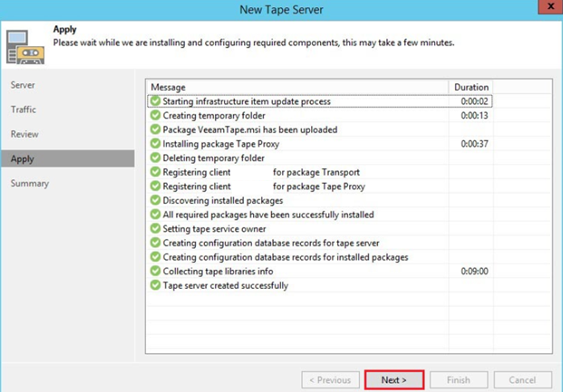 Veeam, belirttiğimiz sunucuya tape proxy kurulumu gerçekleştirip bağlı bulunan tape ünitesi ile iletişim kurup cihaz bilgilerini çekecektir.