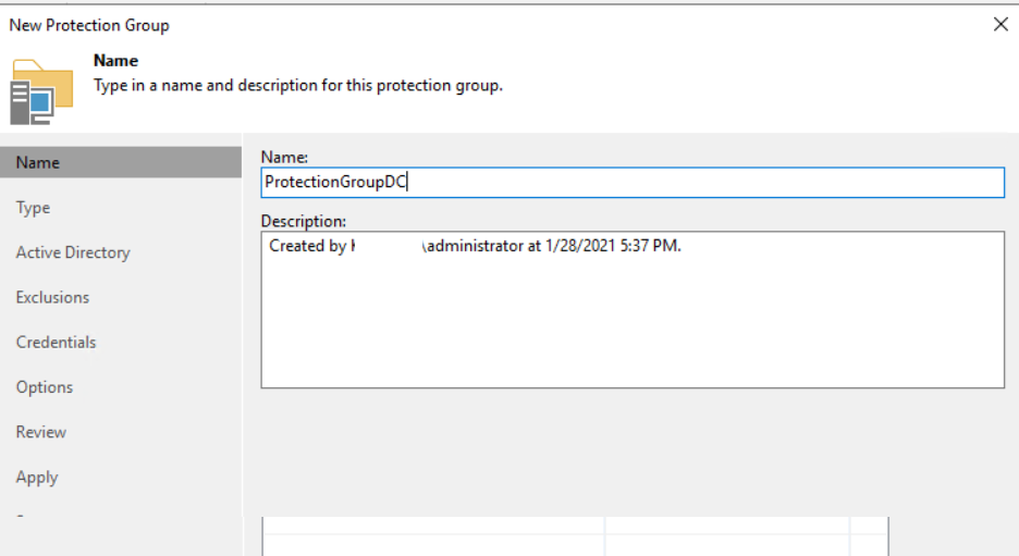 Ardından Protection Group’a isim vererek işlemlere başlayabilirsiniz.