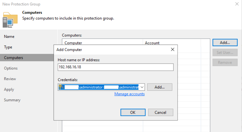 Yukarıda da belirttiğim gibi bilgisayarlarınızı Active Directory üzerinden tanıtabilirsiniz fakat ben bağımsız tek bir makina yedekleyeceğim için Individual computers seçeneği ile devam ediyorum. Eğer ortamınızda bir AD yok ve fazla sayıda fiziksel makina eklemek istiyorsanız CSV formatında hazırladığınız bir excel dosyasını aracılığı ile de bilgisayarlarınızı ekleyebilirsiniz.