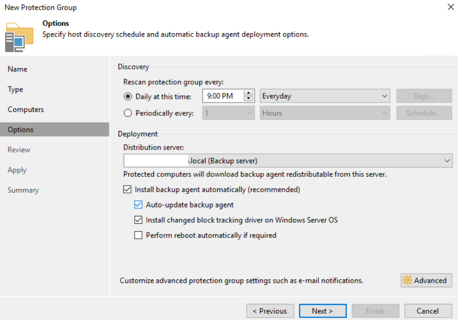 Protection Group, fiziksel veya cloud makinalarının yönetimini kolaylaştırmak için kullanabileceğiniz mantıksal bir kümedir. Aynı işletim sistemine sahip olanlar, aynı lokasyonda olanlar vb. protection gruplar ile fiziksel makinaların toplu yönetimini kolaylaştırabilirsiniz. Protection group oluştururken bilgisayarları Active Directory ortamınızı referans alarak veya bağımsız olarak ekleyebilirsiniz.