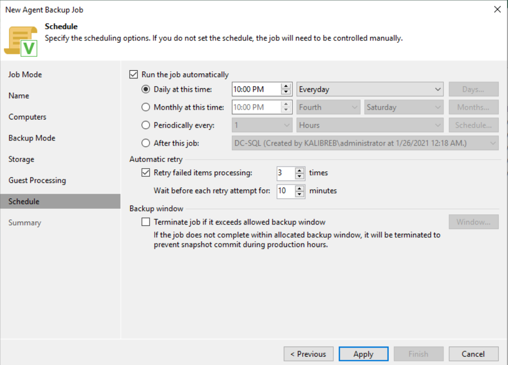 Buradan sonrası normal bir job’da bulunan Repository seçimi, Guest Processing ve Schedule işlemlerinden ibaret.