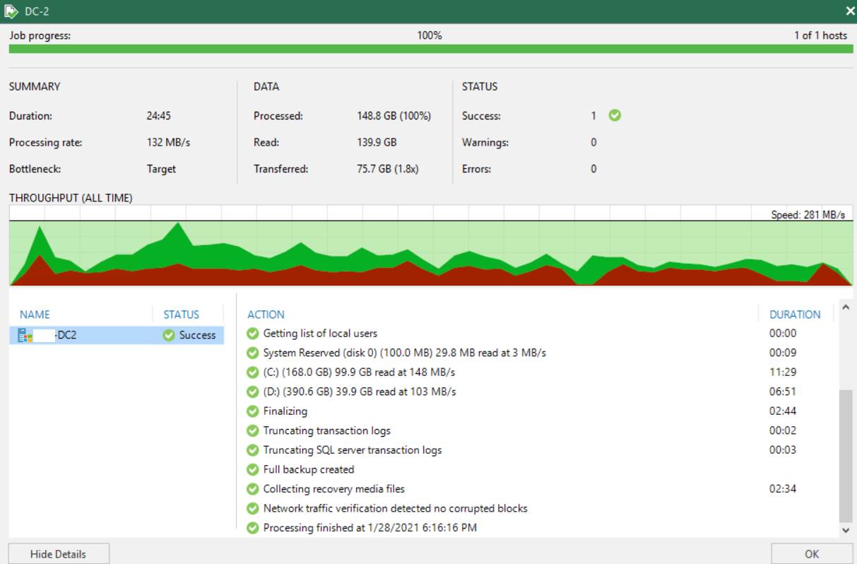 Job’I oluşturduktan sonra çalıştırdığımda, aynı ortamdaki sanal DC ile hız anlamında neredeyse bir fark olmadan tamamlandığını söyleyebilirim.