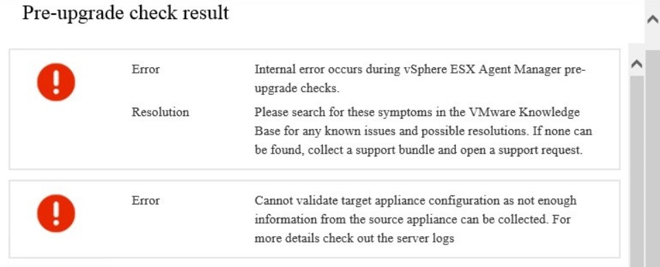 Artık vcenter upgrade işlemini tekrar başlatabilirsiniz. Pre-upgrade checks aşamasını başarıyla geçeceksiniz. Her şey yolundaysa eam.properties.old dosyasını da silebilirsiniz.
