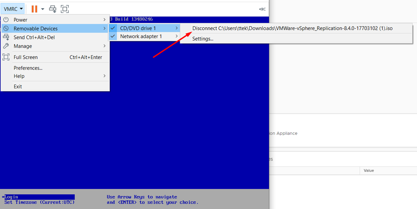Vmware üzerinden indirdiğimiz 8.4 ISO dosyasını VR sanal sunucusunun erişebildiği bir datastore’a yükleyip sanal sunucuya datastore iso file olarak gösterebilirsiniz. Ya da network bağlantınız iyi durumdaysa benim yaptığım gibi client device üzerinden ISO’yu mount edebilirsiniz.