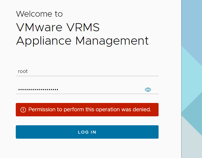 8.4.x’e özgü olarak VAMI arayüzüne yeniden bağlanmayı denediğinizde root kullanıcısı ile login olamadığınızı göreceksiniz.