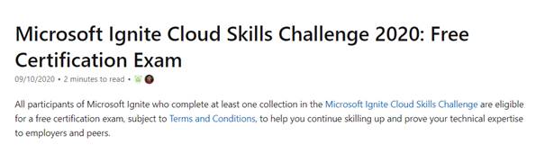 Cloud Skills Challenge’da en az bir Microsoft Learn koleksiyonunu (6 Microsoft Learn koleksiyonunu içermesi bekleniyor) tamamlamış olan tüm Microsoft Ignite katılımcıları, ücretsiz sertifika sınavına girmeye hak kazanacaklar. Microsoft Build 2020 kapsamında gerçekleşen önceki yarışmalardan, tüm koleksiyonları tamamlamanın ekibin genel sıralamasını iyileştirebileceğini ve farklı bireysel ödüllere kapı açabileceğini hatırlıyoruz.