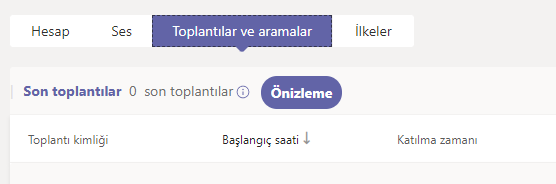 Kullanıcı profili açıldığında Toplantılar ve aramalar başlığına giriş yapın.