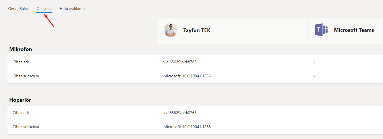 Kullanıcının detaylarına girdikten sonra Gelişmiş sekmesine geçerseniz katılımcının tüm cihaz ve bağlantı bilgilerini görüntüleyebilirsiniz.