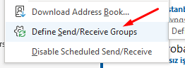 Yapmamız gereken bu klasörlerinin senkronizasyonunu durdurmak. Outlook Send/Receive Groups menüsünden Define Send/Receive Groups seçeneğine tıklayın.