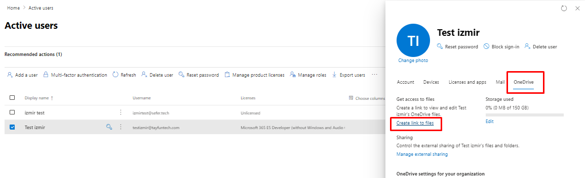 To get the OneDrive site link of the user whose OneDrive we will make read-only, follow this path: Admin Center>>Users>>Active Users>>Example user>>OneDrive>>Get Access to files