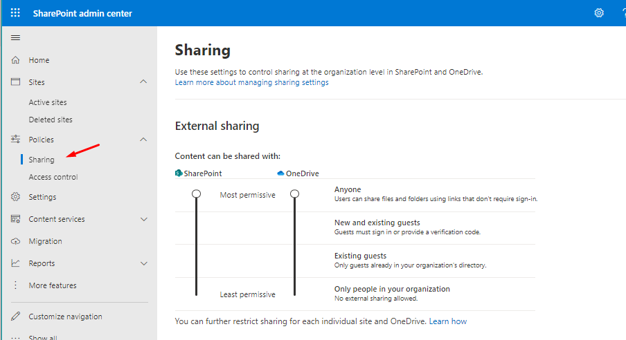 Bugün aldığım bir destek talebinde müşteri, SharePoint Online üzerindeki dosyalarını dış kullanıcılar ile paylaşamadığını belirtti. Böyle bir şikâyette kontrol edilecek iki yer vardır. Önce SharePoint Admin Center üzerindeki Sharing Policy ayarlarına baktık. Burada paylaşım ayarları Anyone şeklinde ayarlanmıştı. Yani sorun yok.