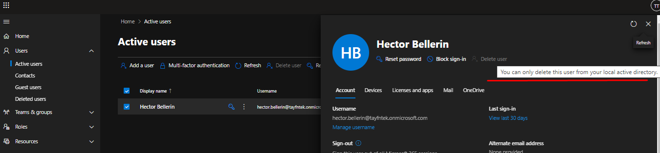 When organizations manage their user identities through a synchronization process from On-Premise Active Directory to Azure AD, situations may arise where users are deleted on the On-Premise side but persist as orphaned entities in Azure AD. This can pose a challenge, especially when attempting to delete these users directly from the Azure AD interface, as the platform restricts such actions, stating, “You can only delete this user from your local Active Directory.”