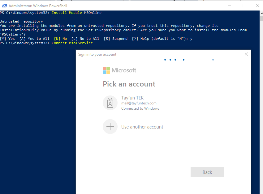 # Before starting ensure you have installed the MSOnline Module. If it’s not available on your computer, run the following command for installation.