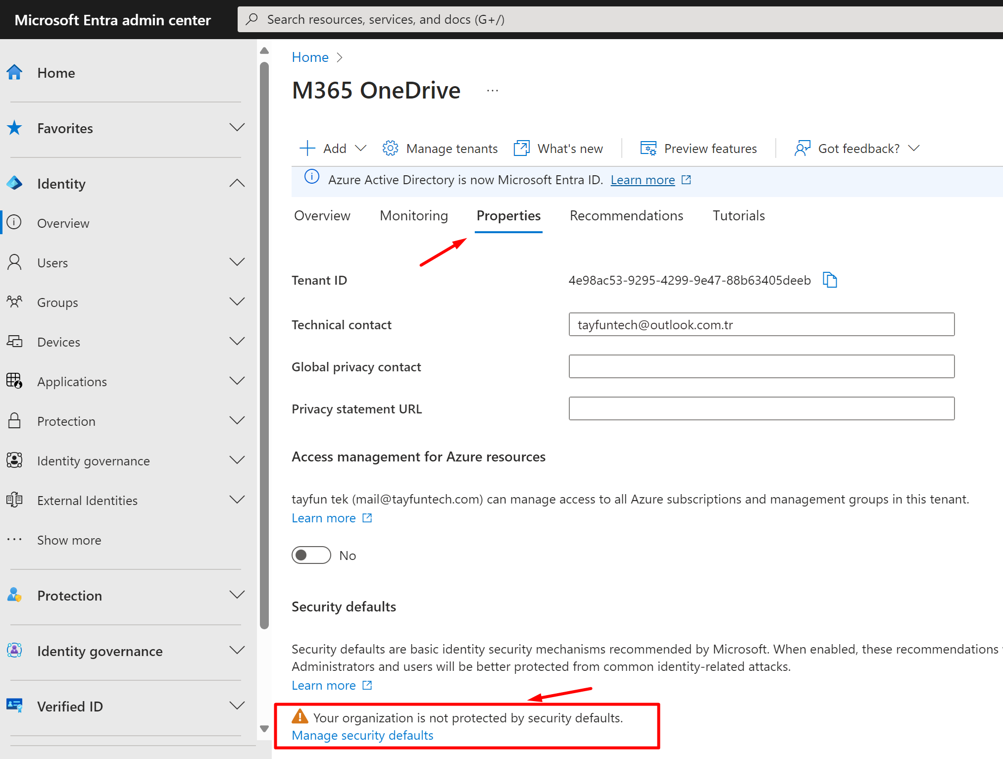 Navigate to the Entra ID ( https://entra.microsoft.com ). Click on Properties tab menu in the middle of the screen. Then scroll down to the end. Check Security defaults option whether enabled. If it’s enable this force mfa registration prompts to users.