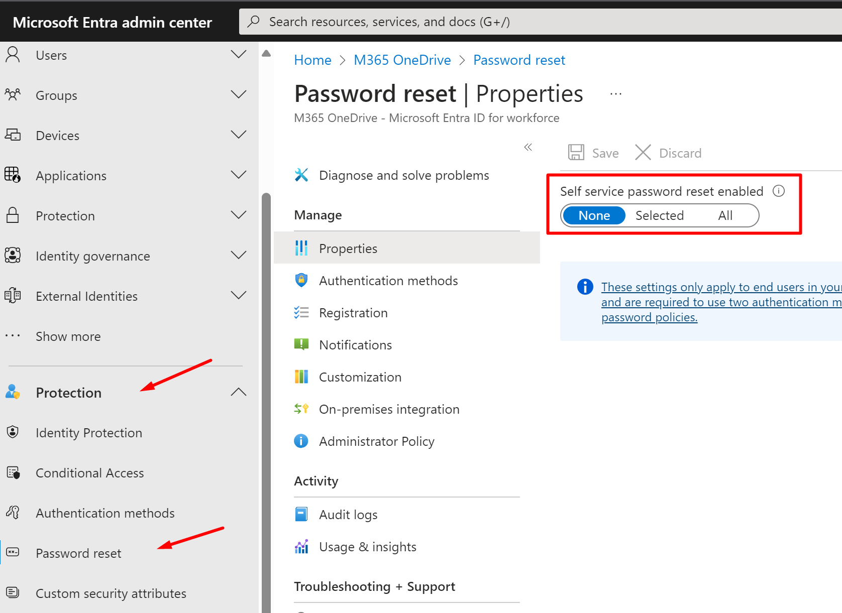 Self Service Password Reset is a feature that allows user to reset their own password. To make this possible, users must complete the mfa registration procedure. Thus they can proof their ID when the password reset time has come. So, you need to check whether SSPR is enabled from Entra ID Admin Center>>Protection>>Password Reset