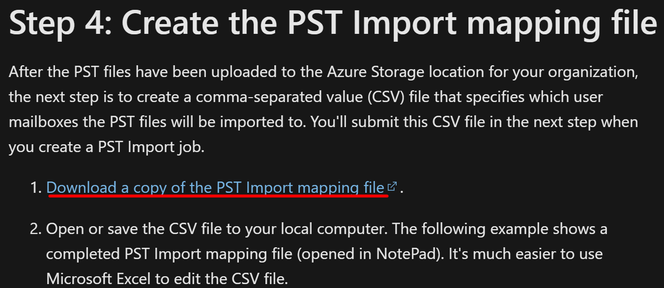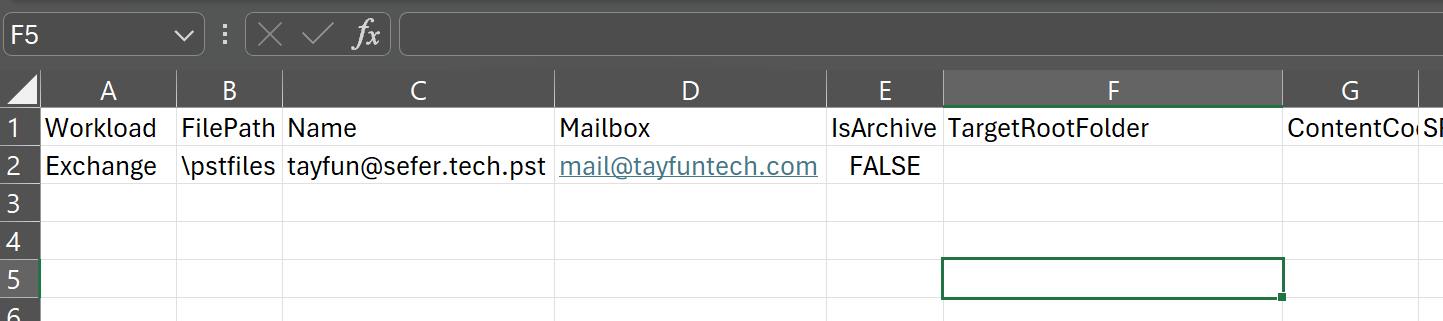 Bir sonraki adım ise import etmek istediğimiz pst dosyaları ve hedef posta kutularını belirteceğimiz bir map dosyası oluşturmak. Örnek bir map dosyasını aşağıdaki bağlantıdan indirebilirsiniz.